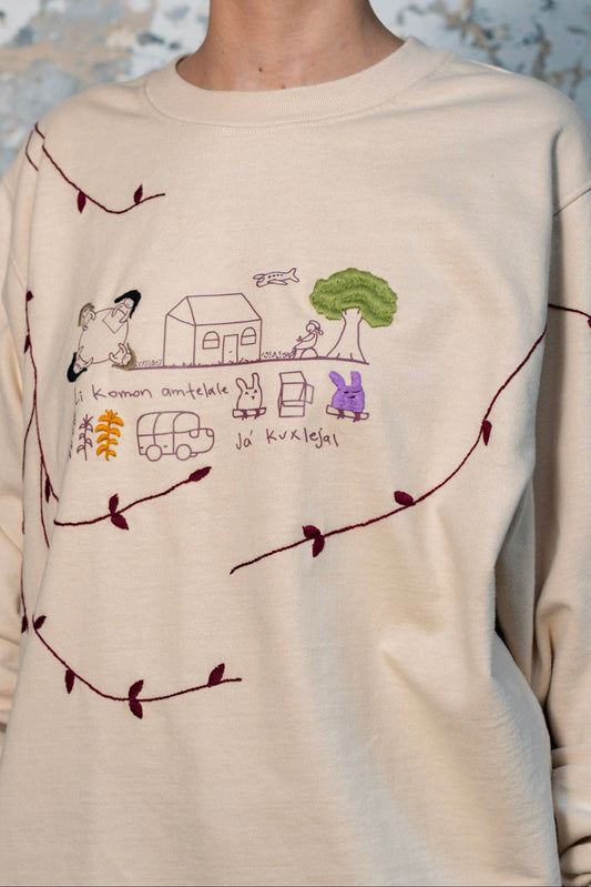 Sudadera Telar color beige bordada a mano
