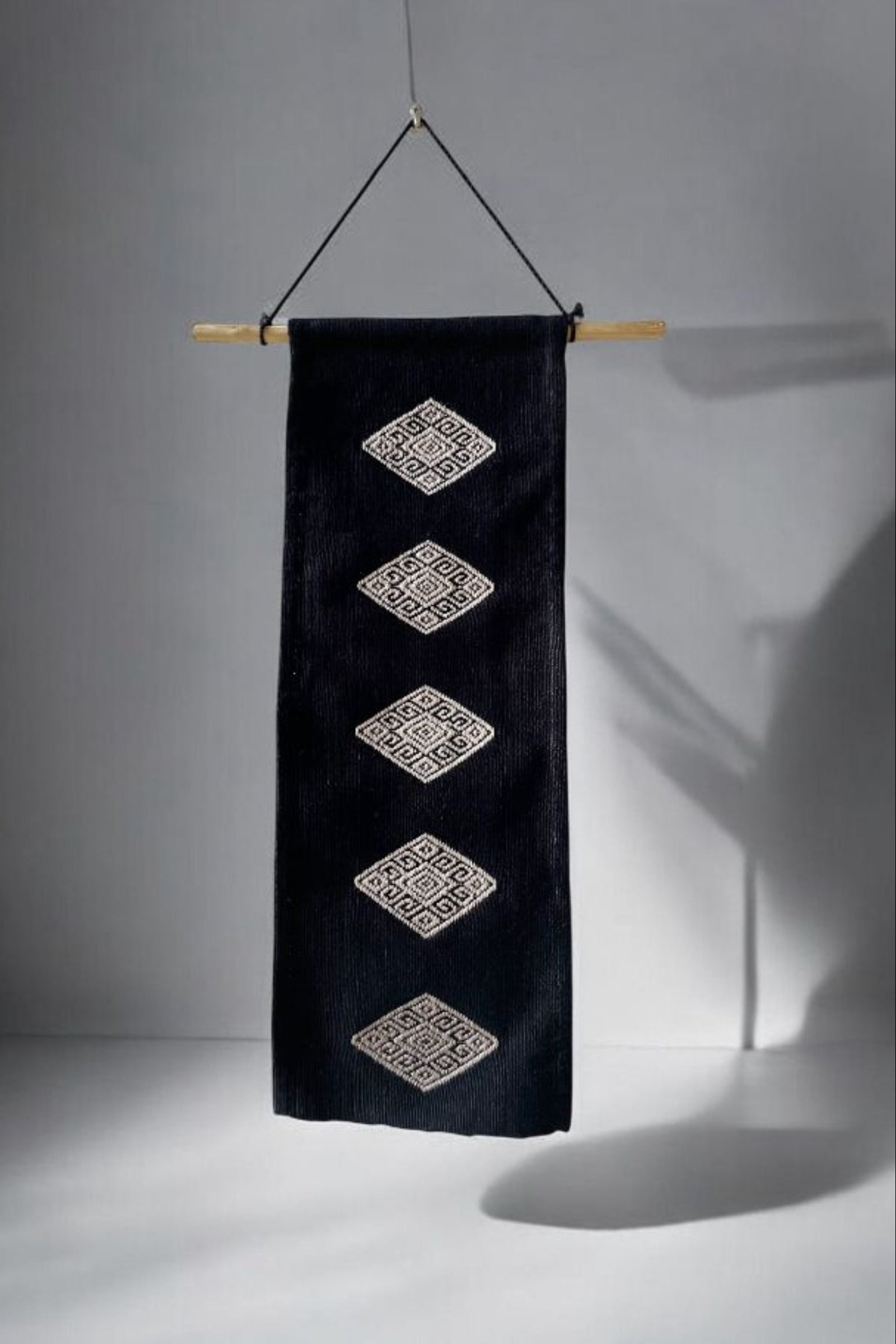 El rombo es una iconografía tradicional que representa el centro del universo. En el tejido, simboliza equilibrio, origen y punto de conexión entre dimensiones.