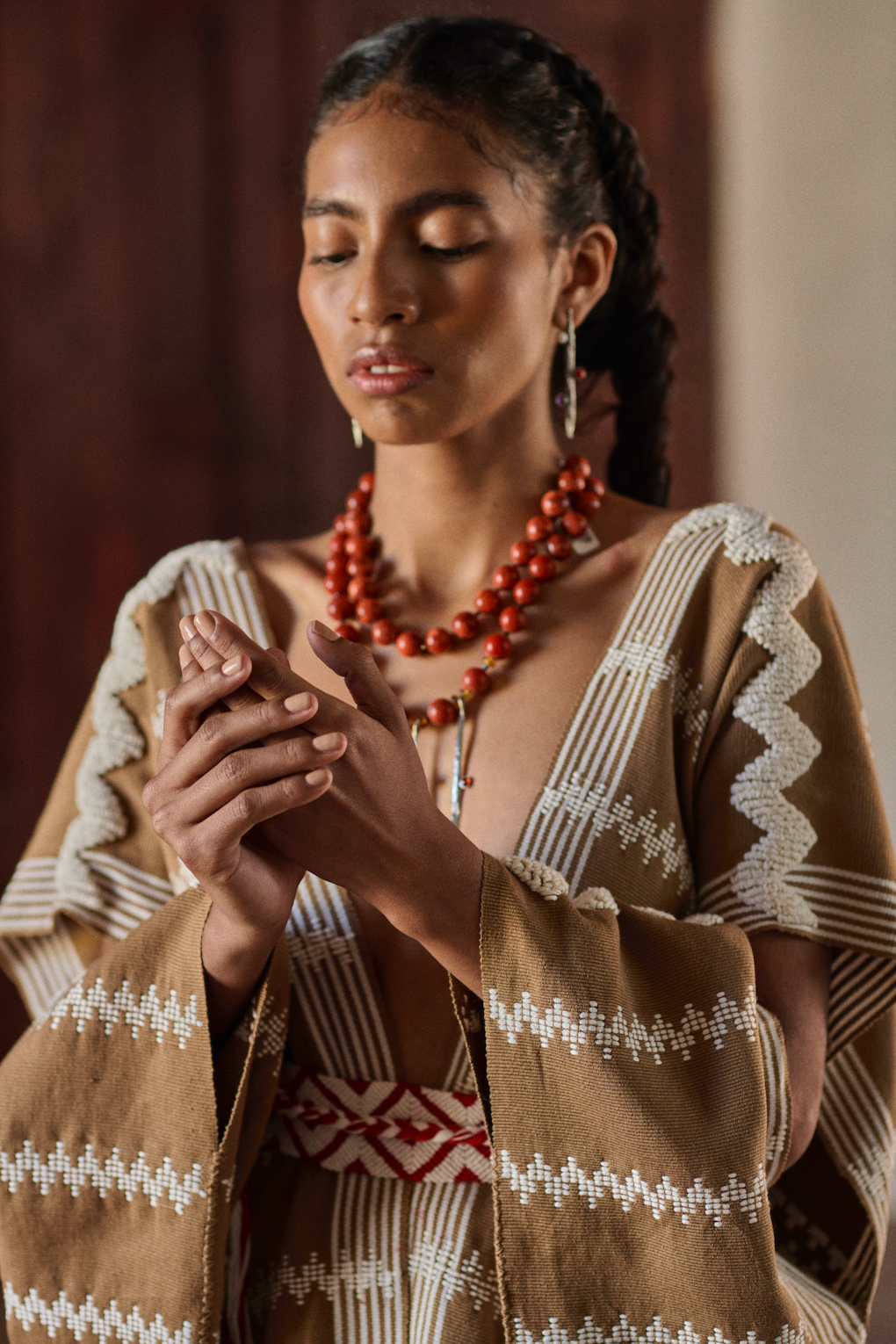 Artisanal Techniques: Backstrap loom weaving & raised embroidery