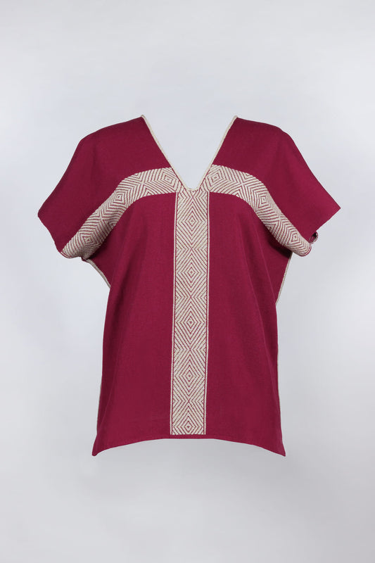 Handwoven on a backstrap loom, this maxi huipil features intricate hand-brocaded embroidery, inspired by the traditional huipil of Cancuc, Chiapas, Mexico.