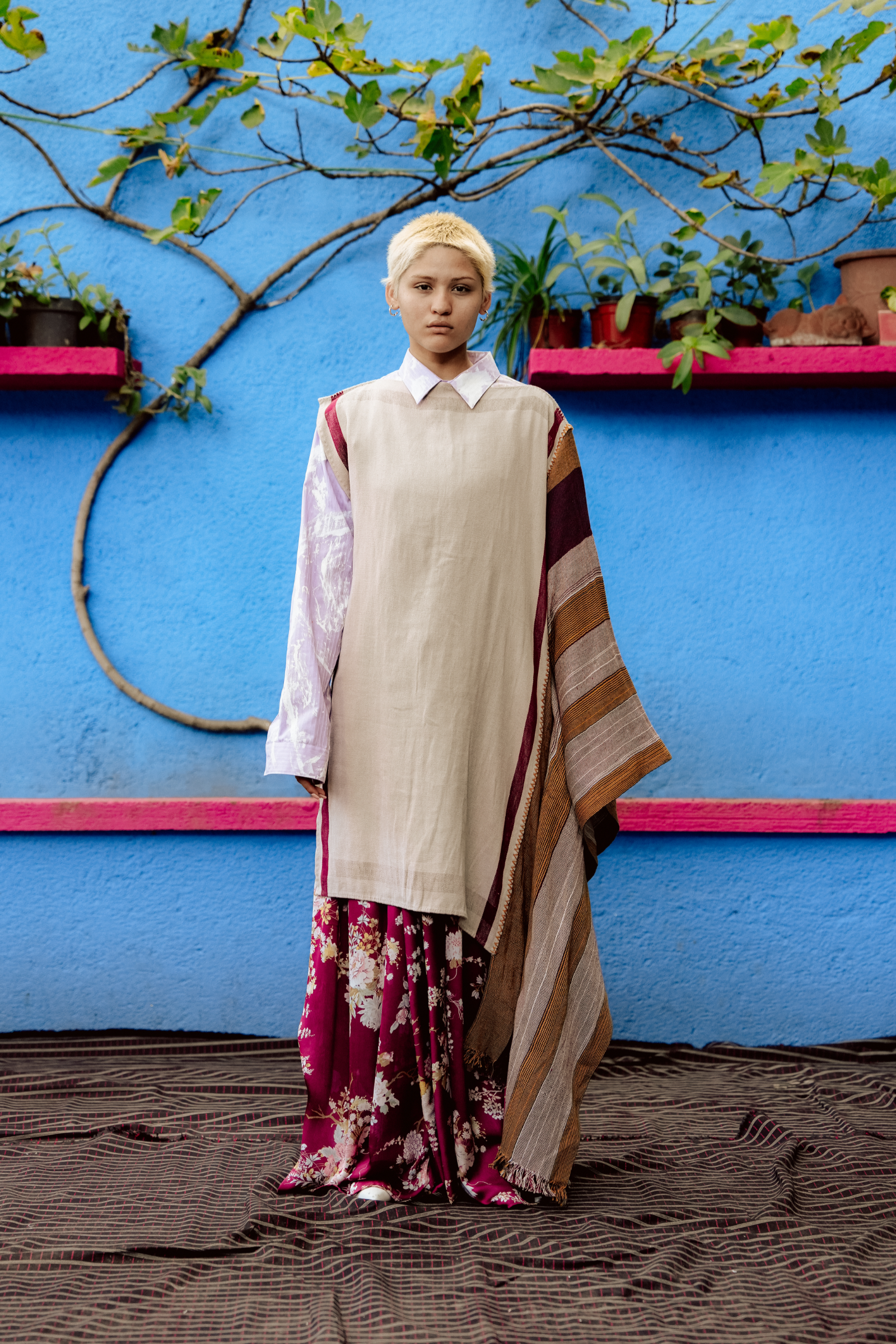 Vestido elaborado por la coopertiva Luchetik de Aldama en telar de cintura con Chalina Alba Verde hecha por la Cooperativa Choy Spolavil de Santiago El Pinar con detalle de costura a mano por la misma cooperativa. Esta pieza tomó 56 horas de labor artesanal, cada pieza es única e irrepetible por lo que cada prenda puede tener pequeñas variaciones en el tejido.