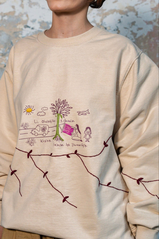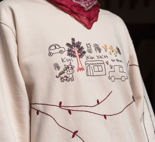Estas sudaderas son resultado de las currículas de Sueños y Visiones en la que las mujeres exploran más allá que es lo que más anhelan y que pueden lograr con su trabajo. Los dibujos en las playeras son la representación de todos estos sueños que tienen las mujeres artesanas de Juxta. Todas las jugadoras están estampadas y bordadas a mano.El showroom cuenta con prendas únicas, elaboradas en comunidades de los Altos de Chiapas, México.