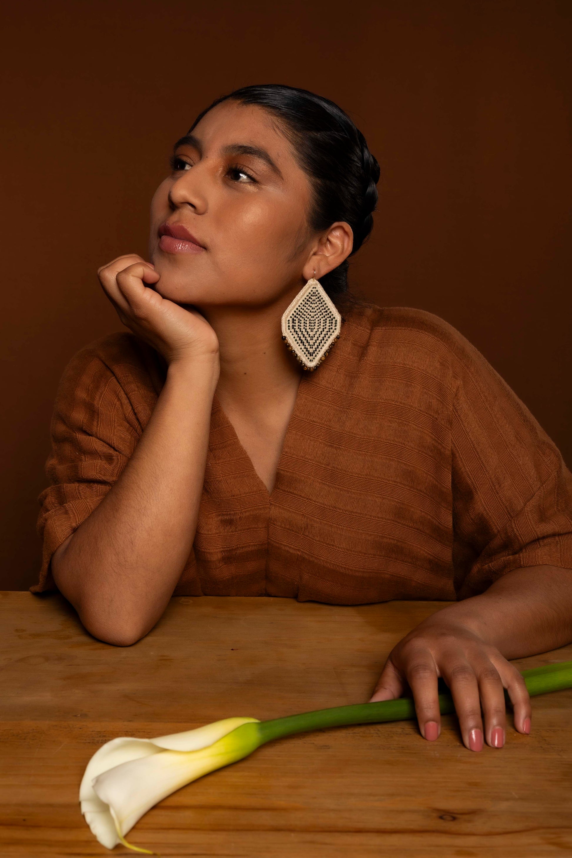 Aretes Diamante Piedra Beige